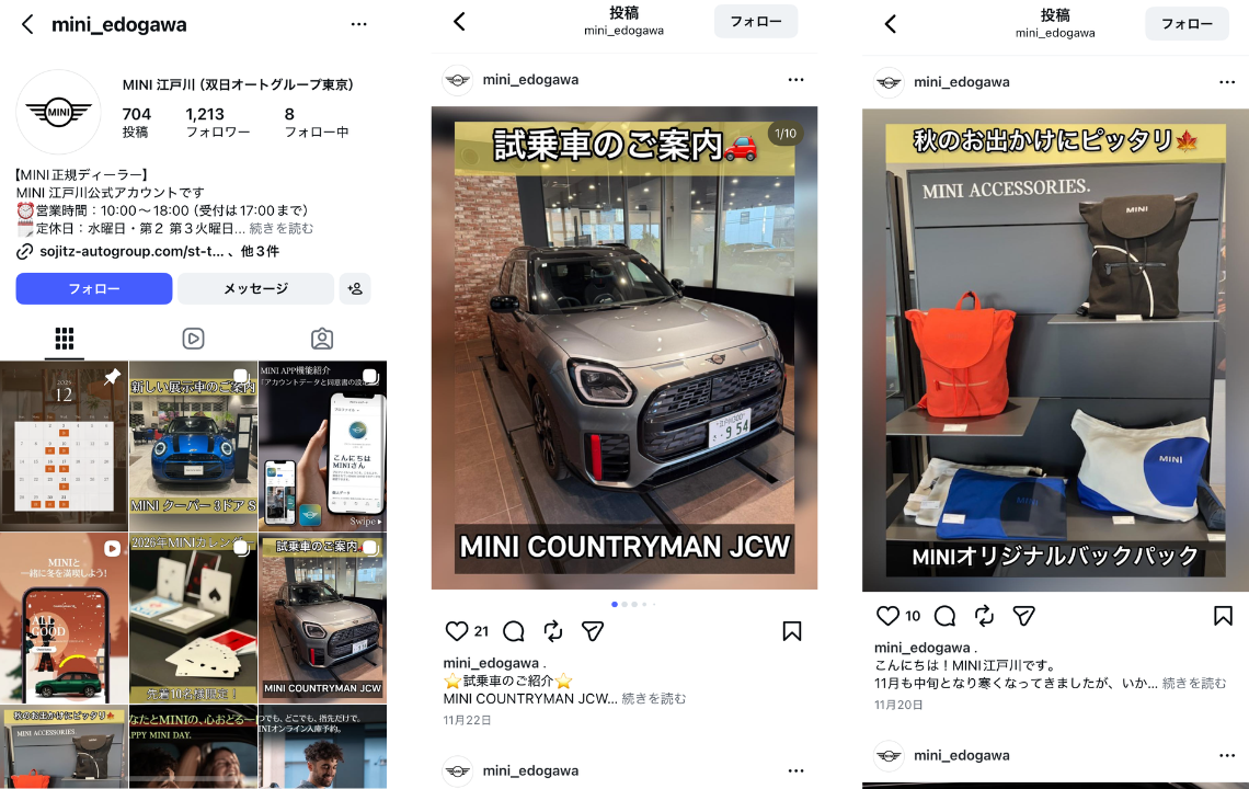 展示車両や最新情報はMINI江戸川のInstagramアカウントからチェックできます